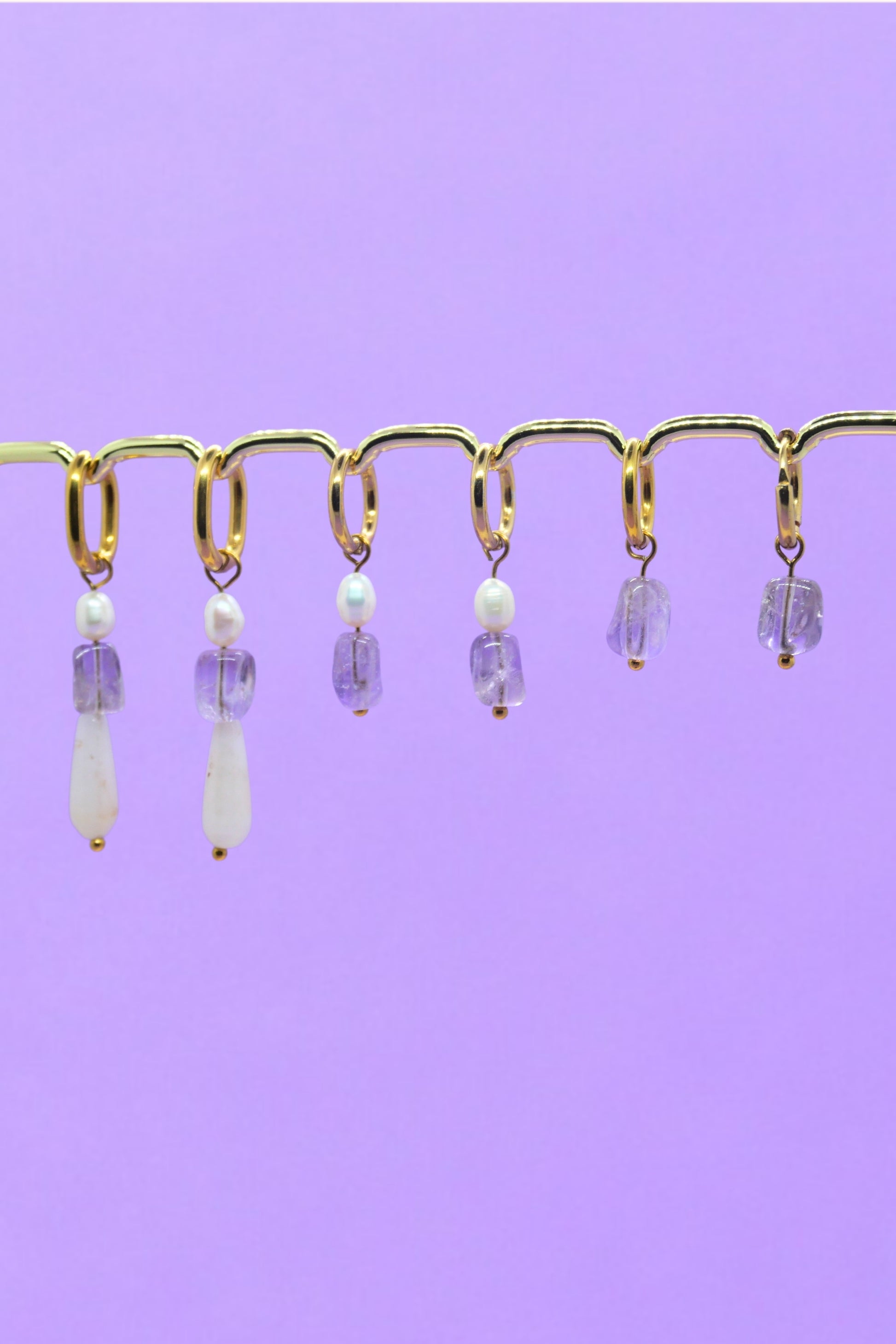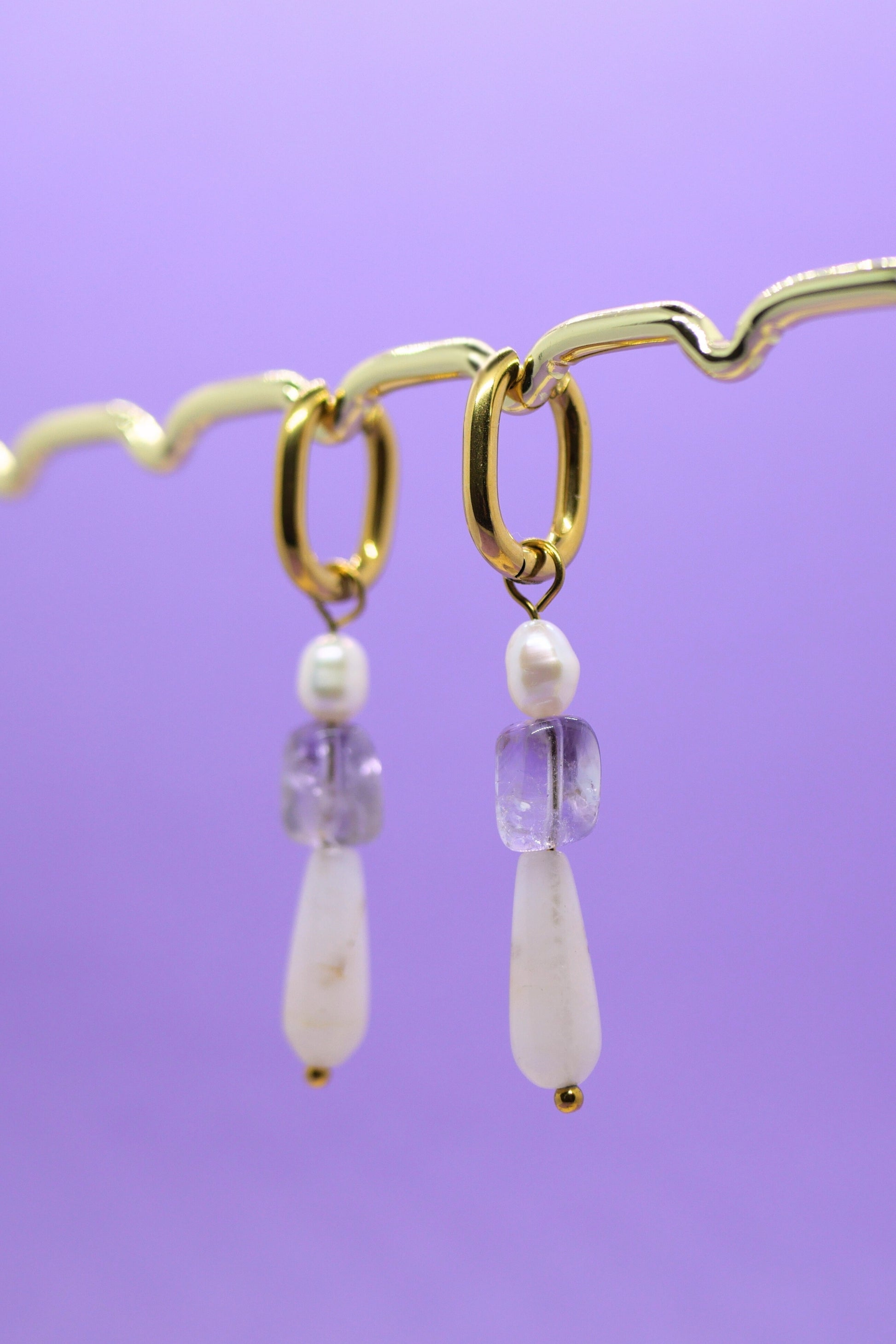 💎 Ornées d’une pierre semi-précieuse d’améthyste, d’une perle de quartz blanc et d’une perle d’eau douce naturelle